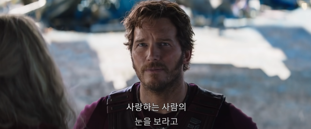 예고편 중간에 깨알 재미 포인트도 있는데요. 토르에게 '사랑하는 사람의 눈을 바라보라'며 자신의 가족과 같은 가오갤 멤버들을 애틋하게 바라보는 스타로드.